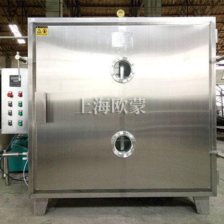 箱體:首先采用厚度為δ6mm的SUS 304不銹鋼焊接成干燥箱內(nèi)壁,再用12#槽鋼在外部做加強焊接。加強完成后鋪設保溫材料,再安裝外封板。該烘箱保溫層的厚度為120mm,保溫材料采用**的巖棉。工作室的頂部在制作時設計為拱形結(jié)構(gòu),此結(jié)構(gòu)在干燥過程中,會使凝結(jié)的冷凝水向箱體兩側(cè)滑落后匯集到工作室的底部。箱體后部在上方設有抽真空口,抽真空口通徑為DN150。