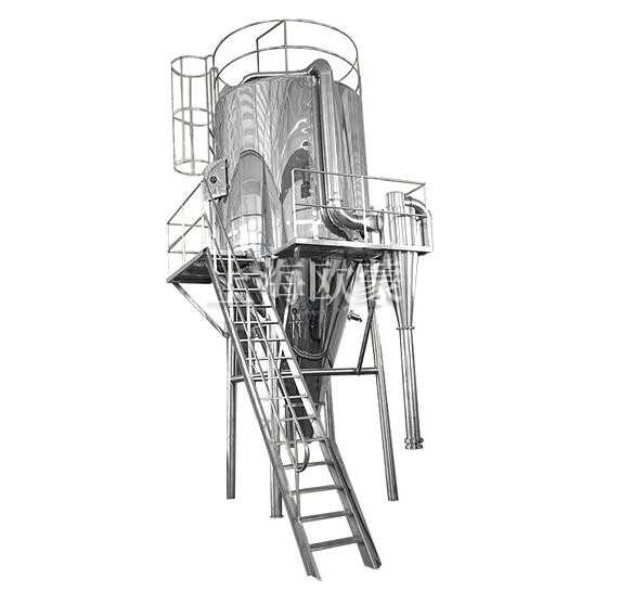 壓力式噴霧干燥制粒機(jī)是采用壓力式霧化器借助隔膜泵的壓力將溶液或漿狀的物料粒霧化成細(xì)微液滴,使表面積顯著增大,經(jīng)與熱風(fēng)進(jìn)行充分熱交換得以快速干燥(十幾秒或幾十秒),從而得到粉體或細(xì)小粒產(chǎn)品的設(shè)備。